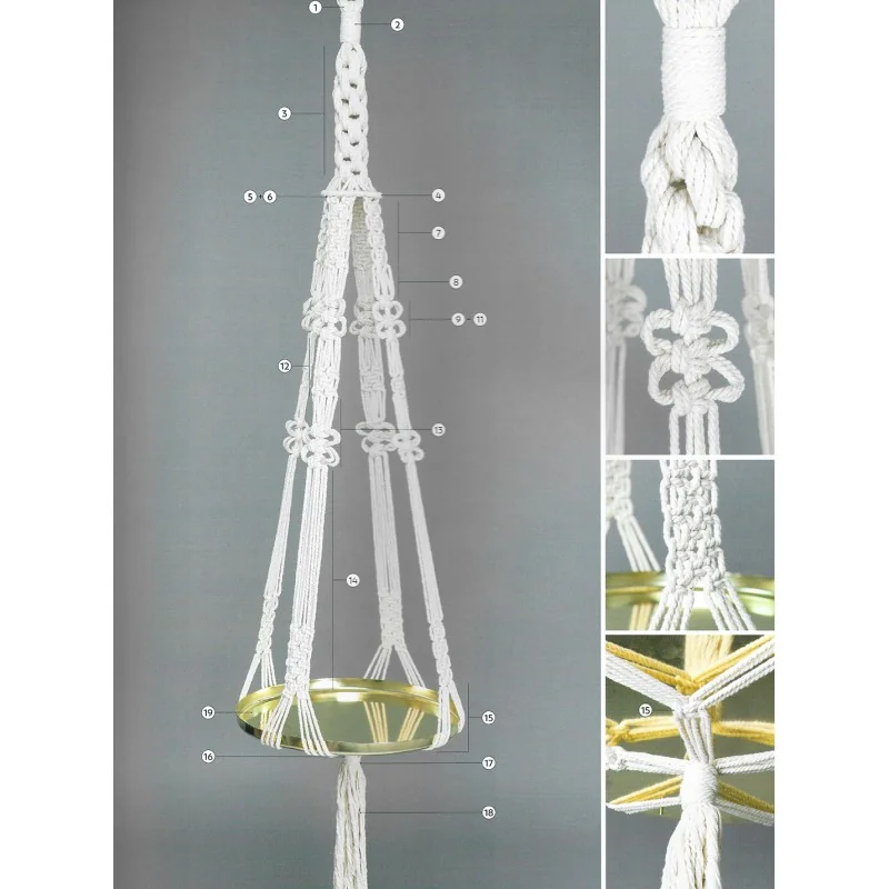 Elk project bevat een overzichtelijke lijst met benodigdheden, handige tips voor materiaalkeuze en knoopspanning, en duidelijke visuele diagrammen die je stap voor stap meenemen door het proces. Hierdoor kun je je techniek perfectioneren terwijl je geniet van het langzame, meditatieve ritme van het knopen.