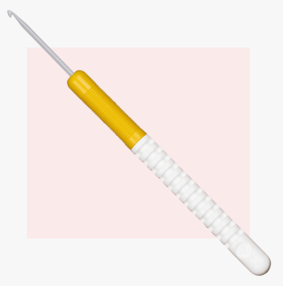 Een unieke eigenschap van deze haaknaald is de draaibare kop. Het bovenste gedeelte van de haaknaald kan draaien, waardoor je eenvoudig de perfecte hoek kunt instellen die past bij jouw persoonlijke haakhouding. Dit zorgt voor een natuurlijke beweging tijdens het haken en verhoogt het comfort aanzienlijk, vooral bij langere haakprojecten. Daarnaast heeft de handgreep een slimme combinatie van geribbelde en gladde oppervlakken, waardoor je de haaknaald precies zo kunt positioneren dat hij optimaal in de hand ligt.