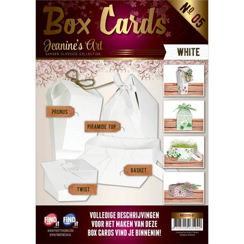 De Box Cards Nr. 5 White is een prachtige en veelzijdige uitgave waarmee je in een handomdraai unieke doosjes maakt om kleine geschenken op een originele manier te verpakken. Dit boek bevat voorgestanste en gerilde basisdoosjes, waardoor je niet zelf hoeft te meten, snijden of rillen. Alles is al netjes voorbereid, zodat je direct kunt beginnen met het leukste gedeelte: het versieren en personaliseren van je creaties.
