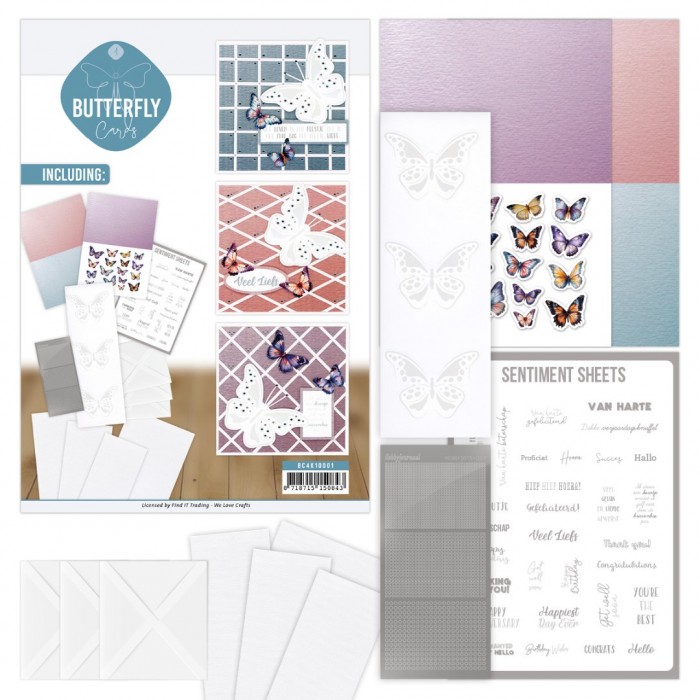 Wat maakt deze set zo bijzonder? Allereerst is het een volledig doe-het-zelf pakket. Alles wat je nodig hebt om meteen aan de slag te gaan zit erin, overzichtelijk en met zorg samengesteld. Denk aan voorgestanste elementen, decoratieve papiersoorten, en uiteraard een reeks prachtige vlinderafbeeldingen die het hart vormen van je creaties.