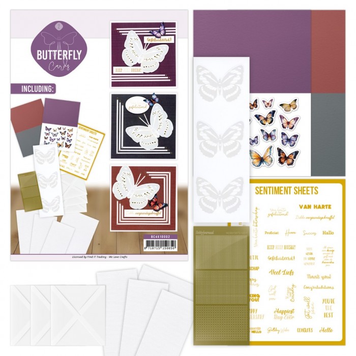 Wat maakt deze set zo bijzonder? Allereerst is het een volledig doe-het-zelf pakket. Alles wat je nodig hebt om meteen aan de slag te gaan zit erin, overzichtelijk en met zorg samengesteld. Denk aan voorgestanste elementen, decoratieve papiersoorten, en uiteraard een reeks prachtige vlinderafbeeldingen die het hart vormen van je creaties.
