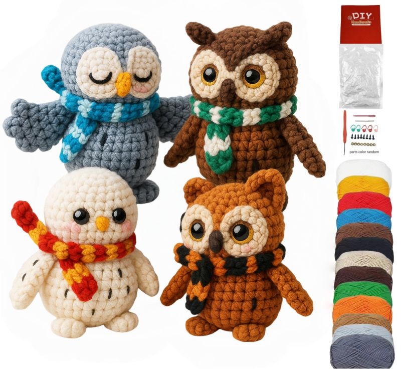 Breng de nacht tot leven met het DIY Haakpakket – Owls (4 stuks)! Het DIY haakpakket is een compleet en betoverend project voor haakliefhebbers van alle niveaus. Met deze set maak je vier schattige uilenfiguren, elk met een unieke uitstraling en persoonlijkheid, perfect als decoratie of als handgemaakt cadeau voor vrienden en familie.