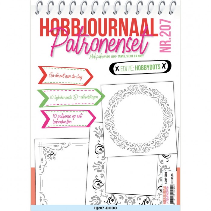 Een handige toevoeging is dat de patronen uit deze set ook afgebeeld staan in het uitneembare patronenkatern van Hobbyjournaal 207. Dit maakt het gemakkelijk om de ontwerpen terug te vinden, te bewaren en eventueel later opnieuw te gebruiken. Zo heb je niet alleen het materiaal, maar ook altijd een duidelijk overzicht bij de hand.