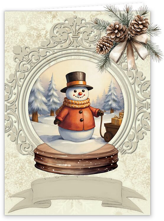 Het thema van dit pakket draait volledig om schattige sneeuwmannen in een winterse globe, een motief dat zowel nostalgisch als eigentijds aanvoelt. De vrolijke sneeuwpoppen, sprankelende sneeuwvlokken en sfeervolle details zorgen ervoor dat jouw kaarten direct een warme kerstuitstraling krijgen. De prachtige illustraties zijn met zorg ontworpen en gedrukt op stevig, hoogwaardig papier dat zich uitstekend leent voor 3D-opbouw.