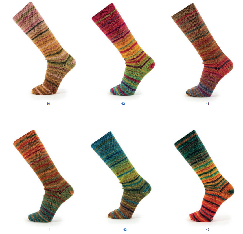 De kleurstelling van Paradise doet denken aan tropische landschappen en zonnige sferen: fris, energiek en vol karakter. Dankzij het slimme kleurverloop ontstaan symmetrische patronen zonder dat je hoeft te tellen of aanpassen. Dit maakt het garen ideaal voor sokken, maar ook perfect voor andere accessoires waarbij balans en herhaling belangrijk zijn.