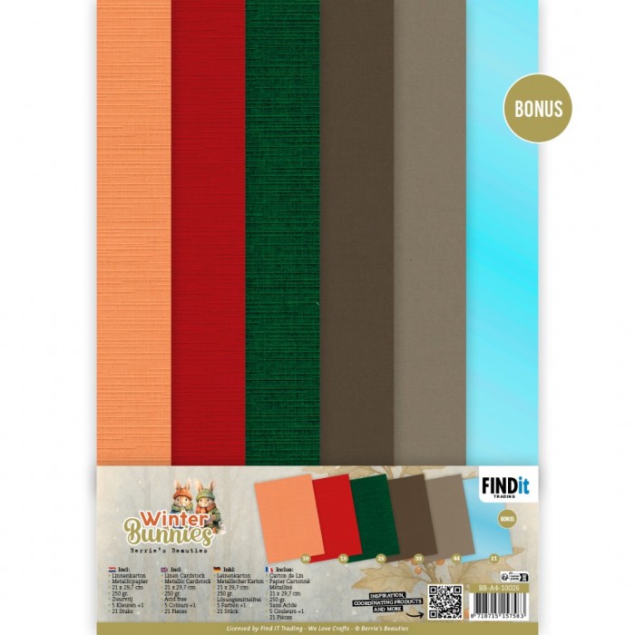 Dankzij de luxe uitstraling, duurzame kwaliteit en perfect afgestemde kleuren is dit linnenkarton pakket een onmisbare aanvulling voor iedere kaartenmaker. Met het Berries Beauties – Winter Bunnies linnenkarton in A4-formaat creëer je eenvoudig sfeervolle, professionele en winterse creaties die gezien mogen worden.
