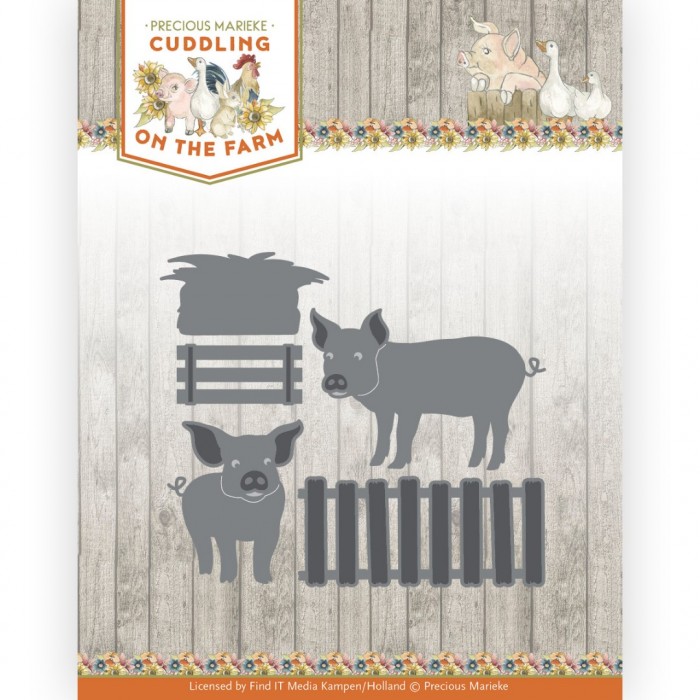Afmetingen: ca. 9,6 x 8,3 cm - Snijmal – Precious Marieke – Cuddling on the Farm: Piglets – PM10227