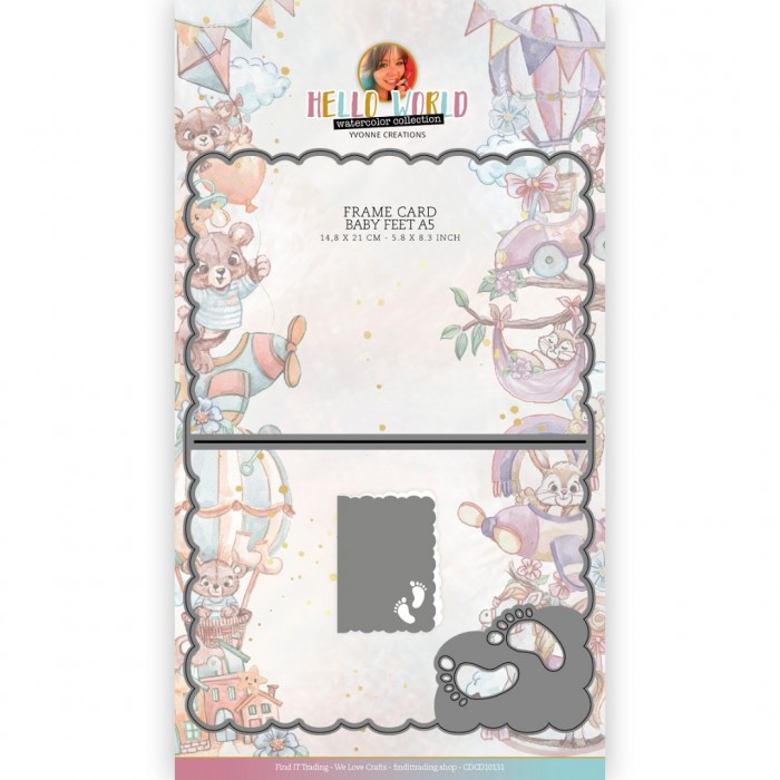 - Snijmal – Yvonne Creations – Hello World: Frame Card Baby Feet A5 – CDCD10131
